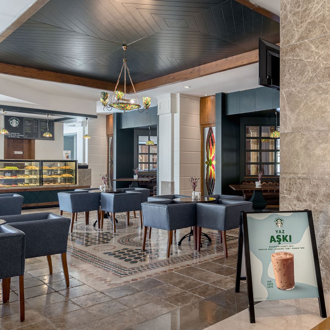 Another newness that will make coffee lovers happy is Starbucks. During your holiday in our hotel, you can sip hot and cold coffees of Starbucks and experience pleasant moments with fresh desserts prepared in our patisserie.