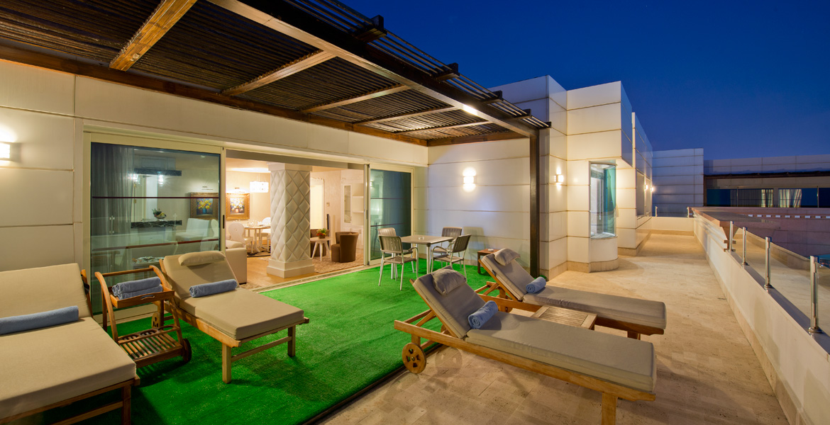 Krallara layık özel hizmetler, krallara layık sıra dışı tatil… Soft renklerin hakim olduğu 266 m²’lik ayrıcalıklı bir dünyada lüksü ve zarafeti hissedin. Geniş teras, eşsiz deniz manzarası, jakuzi ve kusursuz bir dekorasyon…Kendinizi sarayda hissettirecek Kral Dairesi, bambaşka bir keyif ortamı sunuyor.